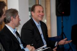 (Pictured l - r: Jeffrey Sachs, Sally Begbie, John Harrison)